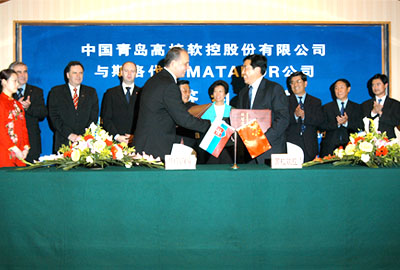 2004年5月11日,我公司与斯洛伐克玛达道尔(MATADOR)公司在青岛海天大酒店举行“轮胎设备技术合作签约仪式”。斯洛伐克副总理帕沃尔 罗斯克(Pavol Rusko)先生、青岛市人大常委会副主任马论业、青岛市委副书记、常务副市长崔锡柱、中国橡胶工业协会理事长鞠洪振等有关领导出席了签约仪式。