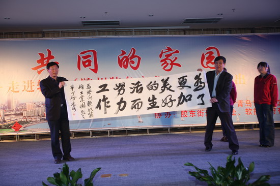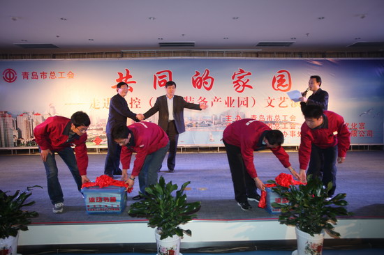 在演出期间,青岛市总工会的领导向u体育员工赠送了书箱。据了解,青岛总工会开展的以提高新市民整体素质为主要内容的“共同的家园”主题系列活动,已连续五年开展了“送演出、送书箱、送讲座、送电影、送活动”为主要内容的“五送”活动,走进厂矿企业、建筑工地,慰问新市民10余万人,极大地丰富和充实新市民的精神文化生活。