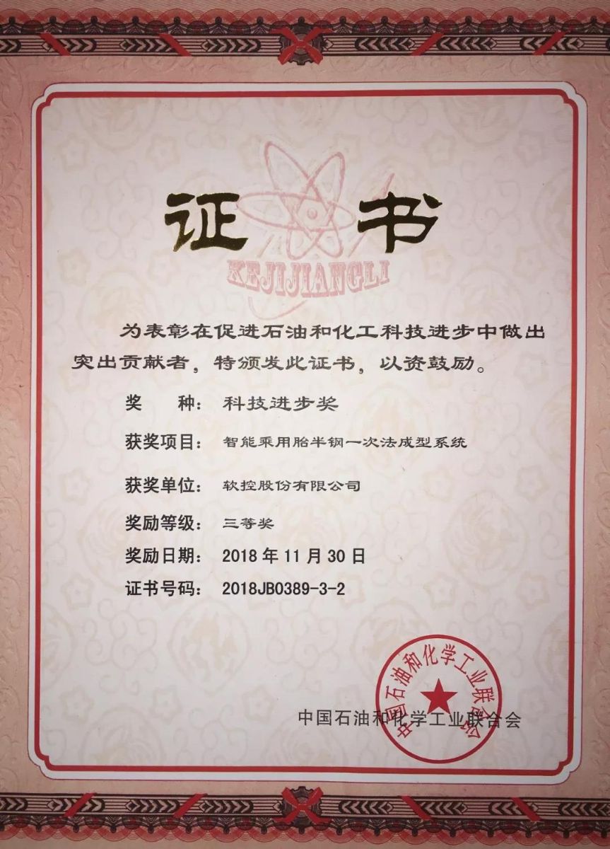 12月3日,由中国石油和化学工业联合会主办的全国石油和化工科技创新大会在北京隆重召开。大会隆重表彰了2018年度全国石油和化工科技进步奖项目,u体育“智能乘用胎半钢一次法成型系统”荣获中国石油和化学工业联合会科技进步三等奖。