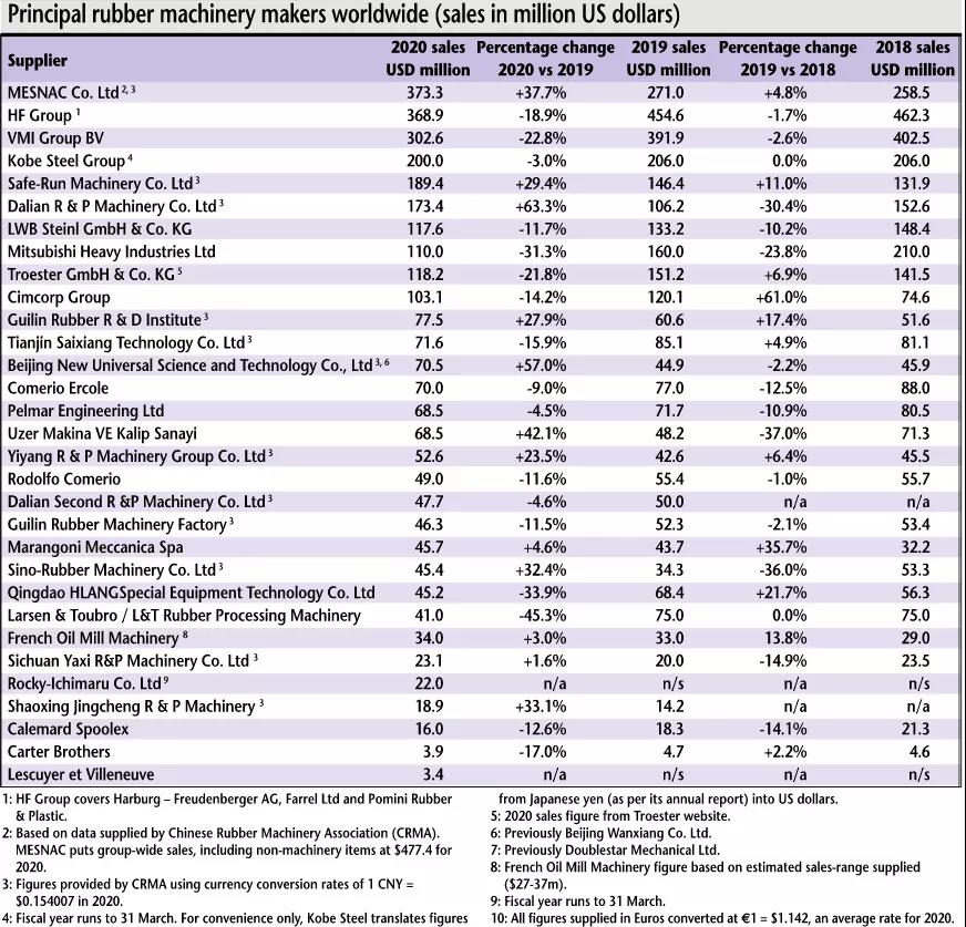 最新出版的欧洲橡胶杂志(European Rubber Journal) 5/6月刊更新了2020年全球橡胶机械行业企业的销售收入排名,u体育(MESNAC)位居第一。