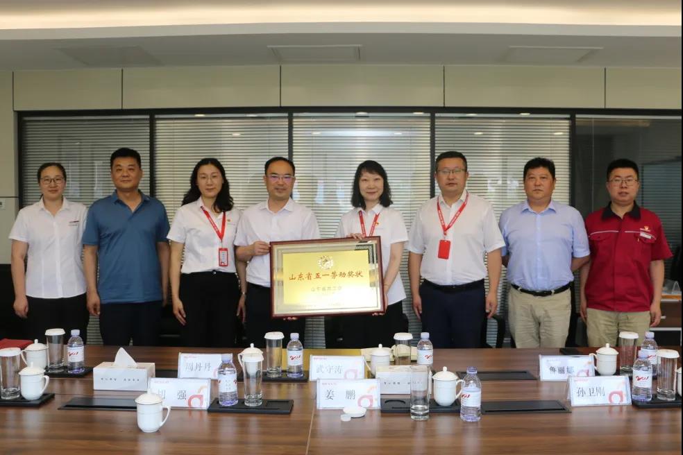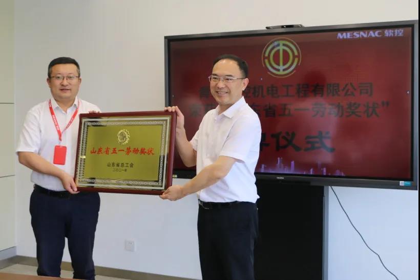 7月9日,胶州市总工会主席姜鹏、副主席孙卫刚、生产部部长胡强一行到胶州装备产业园为青岛u体育机电工程有限公司荣获2021年“山东省五一劳动奖状”进行授牌。u体育党委书记、副总裁鲁丽娜代表公司对领导们的到来表示了热烈的欢迎和衷心的感谢;u体育机电公司总经理武守涛代表公司接受授牌。