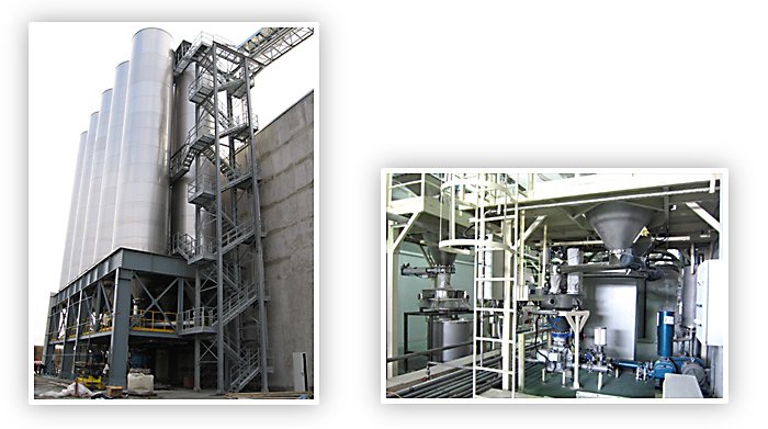 原料存储:通过料仓集中存储,节省原料库的空间;原料库存和用量可控,根据原料配制不同的辅助卸料装置;保证适合原料存储的温度和湿度。